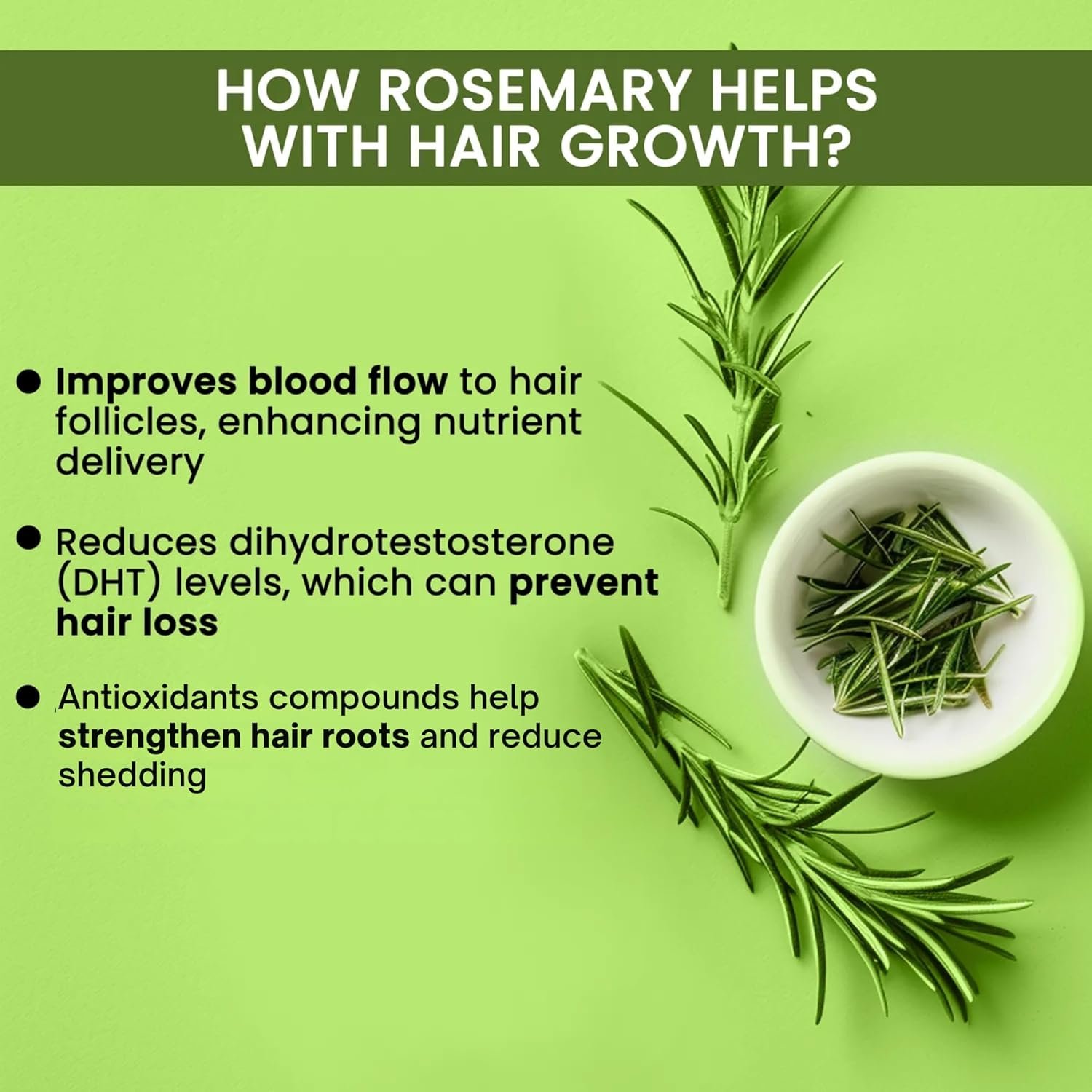 • Reduces Hair Loss: Rosemary’s anti-inflammatory properties may soothe the scalp and potentially reduce hair loss.