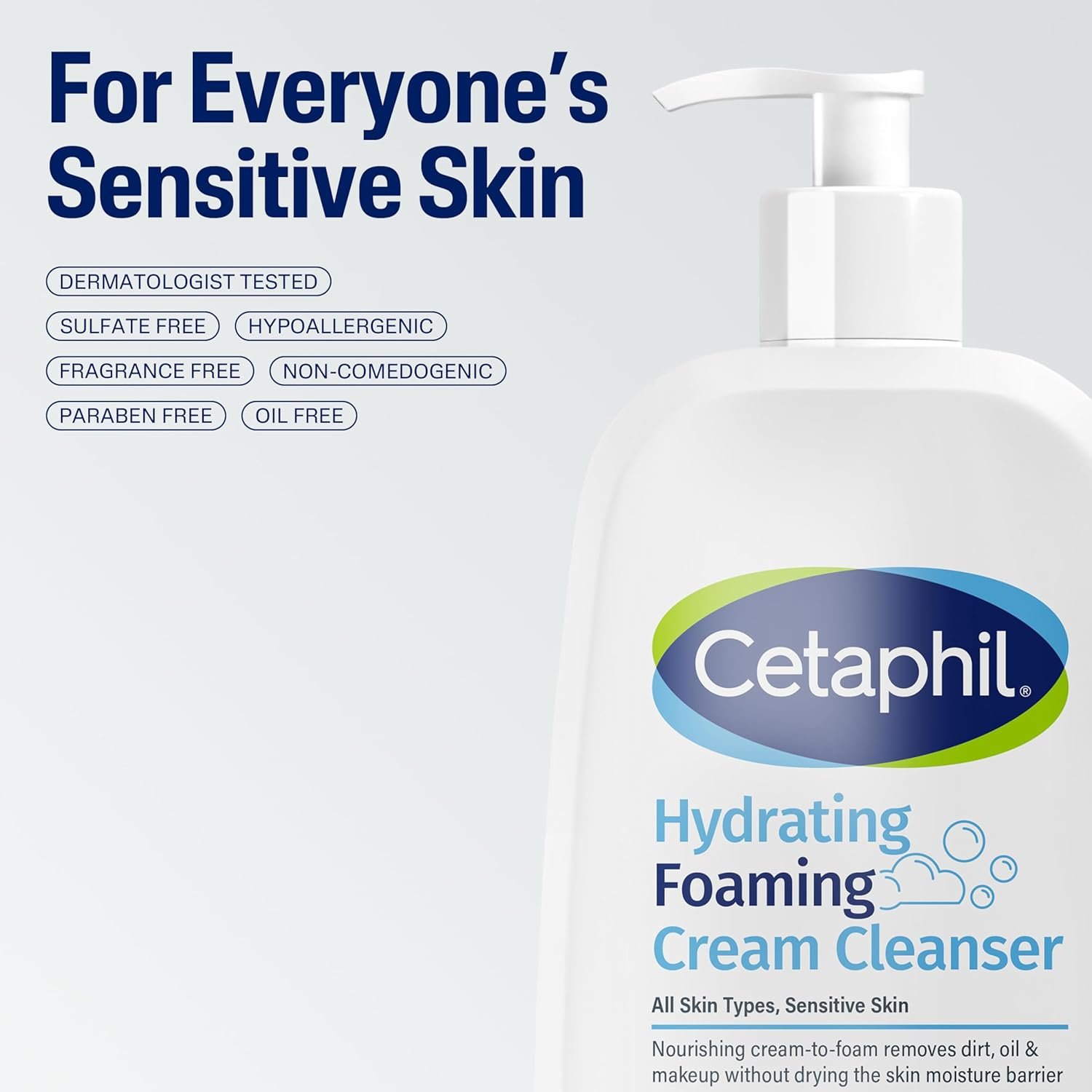Cetaphil Hydrating Foaming Cream Cleanser is a gentle yet effective cleanser that may help remove impurities, dirt, and excess oil while preserving the skin’s natural moisture barrier. It transforms from a creamy texture into a soft, foamy lather that can help rinse clean without over-drying. Enriched with hydrating and soothing ingredients like glycerin, niacinamide, panthenol, and aloe vera, this cleanser targets common concerns such as dryness, irritation, tightness, and a weakened skin barrier. It is suitable for all skin types, including sensitive skin, as it is hypoallergenic and free from parabens and added fragrances.