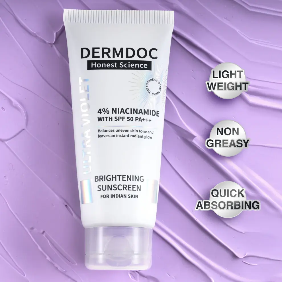 Experience superior sun care with the Ultra Violet Sunscreen SPF 50 PA+++ for complete UVA and UVB protection. This lightweight, purple-tinted formula is enriched with Niacinamide to soothe and protect. It neutralizes discolouration, hydrates skin, and reduces redness. Suitable for daily use, this non-greasy formula ensures comfortable, consistent sun protection.